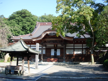 深大寺は、天平5年(733年)に満功上人が創建した寺院で、都内では浅草寺に次ぐ古刹。初めは法相宗だったが、貞観年中(859〜877年)に高僧恵亮和尚が入山し、天台宗に改宗したという。目の前に建つ本堂は、江戸時代末に一度大火で焼失し、その後大正初期に再建されたもので、堂内には本尊の阿弥陀如来像を安置している。 |